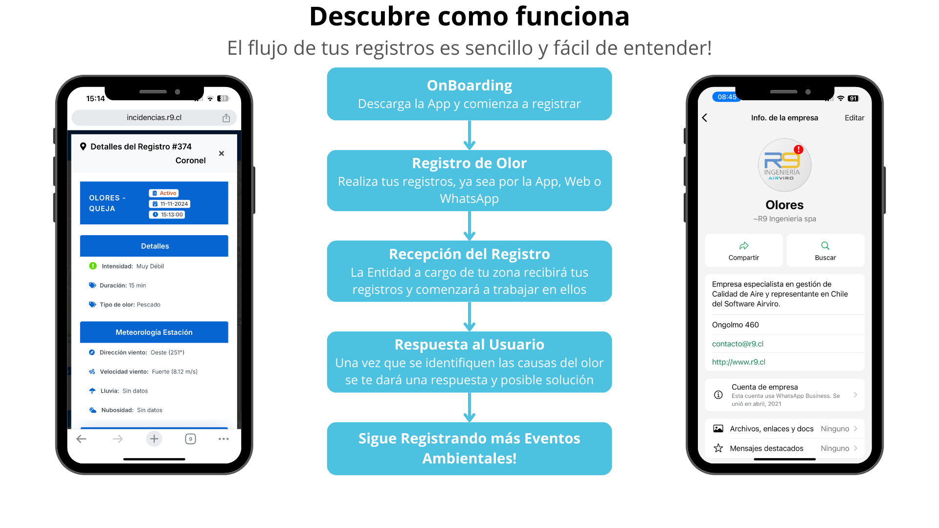 Sigue en tiempo real tanto tus registros de olores como los del resto de la comunidad y mantente enterado de la situación ambiental en todo momento